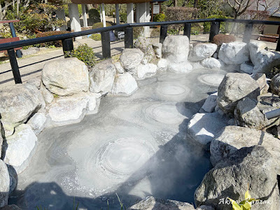 海地獄に隣接の鬼石坊主地獄。コンクリートのような灰色の泥が上がってきた蒸気によりぽこぽこ膨れ上がるのが坊主の頭に似ています。地味だけどなんだか和む。リニューアルしたのかとてもきれいに整備されていました。